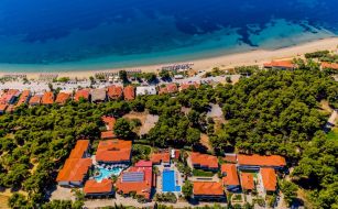 Разположен в началото на втори ръкав на Халкидики, Ситония до селища Псакудиа и Геракини, на 18 км. от град Полигирос, на 20 км. от Муданя. На 80 км. от летище "Македония" в Солун. Състои се от 11 двуетажни сгради. Обширна зелена територия, изчистен и уютен стил, комфортни стаи, ресторант, барове, басейн, интернет, детска площадка за игра, отлично обслужване. Хотелът е чудесен избор за спокойна семейна почивка.