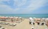 Срещу хотела, пясъчно-чакълест. Чадъри и шезлонги срещу заплащане - сет от 1 чадър и 2 шезлонга 8 евро на ден.