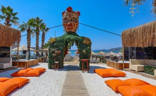 Собствен, пясъчно - чакълест. Чадъри, шезлонги и плажни кърпи на плажа и при басейна – безплатно.