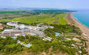 Хотелът се намира на 46 км. от международното летище в Анталия, на 54 км. от центъра на града, на брега на морето. Намира се в топ 100 на най-добрите GOLF хотели в света. Хотела е разположен на 1.000.000 m2, като 600 000 кв. м. са игрища за голф с гледка към плажната ивица.