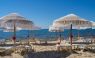Собствен, на места пясъчен и на места каменист плаж, първа брегова линия. Неравномерно навлизане в морето: има зони с каменни блокове и зони с чисто и плавно с пясъчно дъно. За периода от юни до септември хотелът поставя понтонна платформа. Чадъри, шезлонги и матраци на плажа и при басейна - безплатно. Плажни кърпи - срещу депозит.