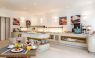 На терасата за закуска се сервира закуска с гръцко кисело мляко, традиционни специалитети и домашни сладкиши. В бара край басейна, заобиколен от палми, се сервират коктейли, кафе и леки закуски.