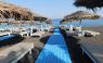 Пясъчен, черен плаж, чадъри и шезлонги срещу заплащане или консумация.